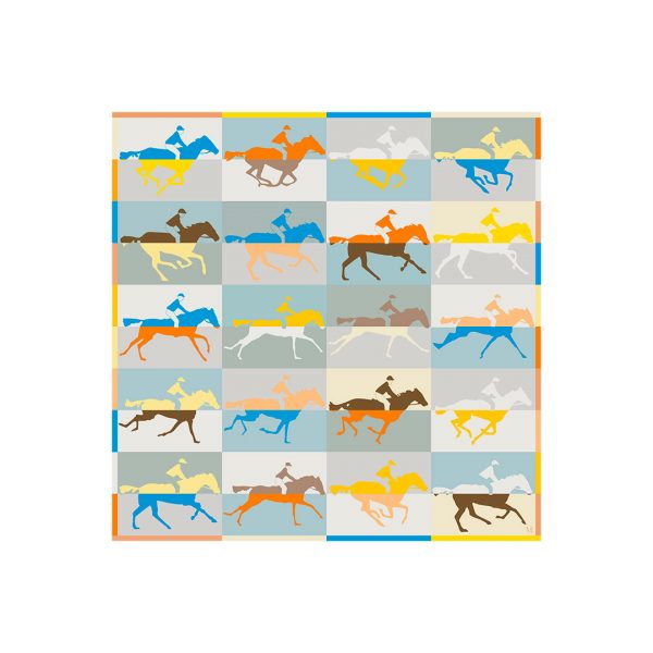 El pañuelo “Jockey” homenajea a los jinetes del prestigioso Gran Premio de Ascot a través de un diseño dinámico y atemporal.